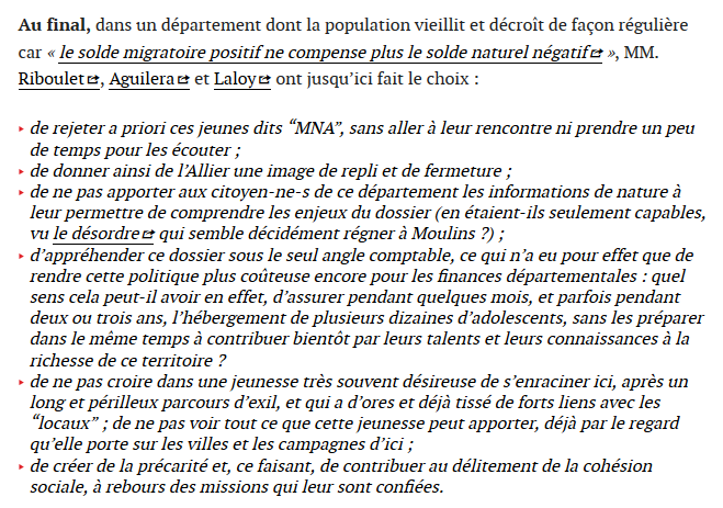 Je vous adresse ci-après un courrier relatif à la situation des mineurs isolés #MIE #MNA dans le département de l’#Allier et notamment dans le bassin de #Vichy.