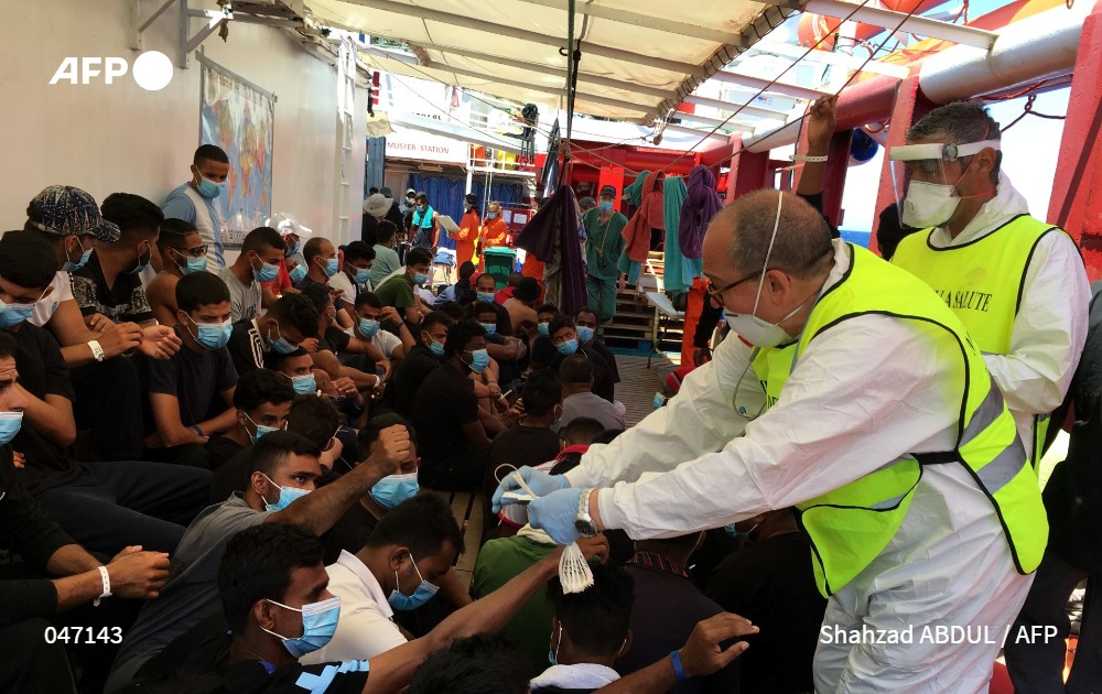 [À la une à 21h] - Onze jours après les premiers sauvetages, le navire humanitaire #OceanViking s'apprête à entrer dans le port sicilien de Porto Empedocle, où les 180 migrants qu'il a recueillis en Méditerranée vont être transférés pour être placés en quarantaine #AFP