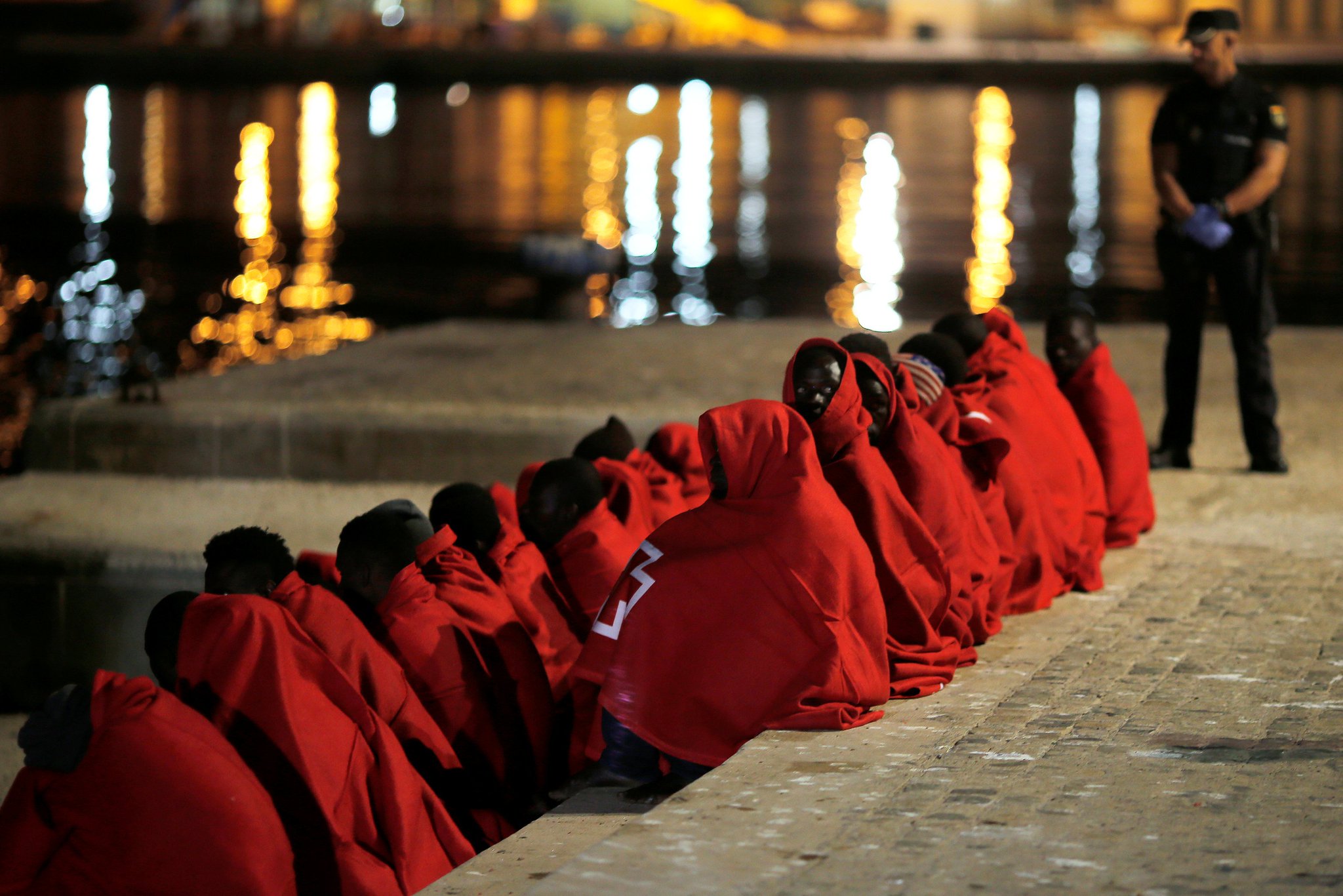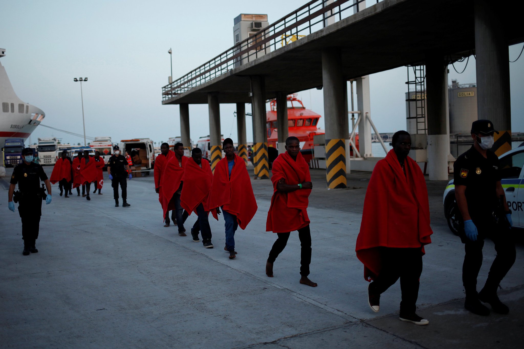 Des migrants secourus en Méditerranée patientent dans le port de Malaga, en Espagne, le 12/10. Crédit : Reuters