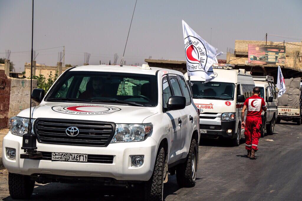 Hier, avec le @SYRedCrescent, nous sommes arrivés à Dumeir, en #Syrie, avec des produits de première nécessité pour plus de 60 000 personnes